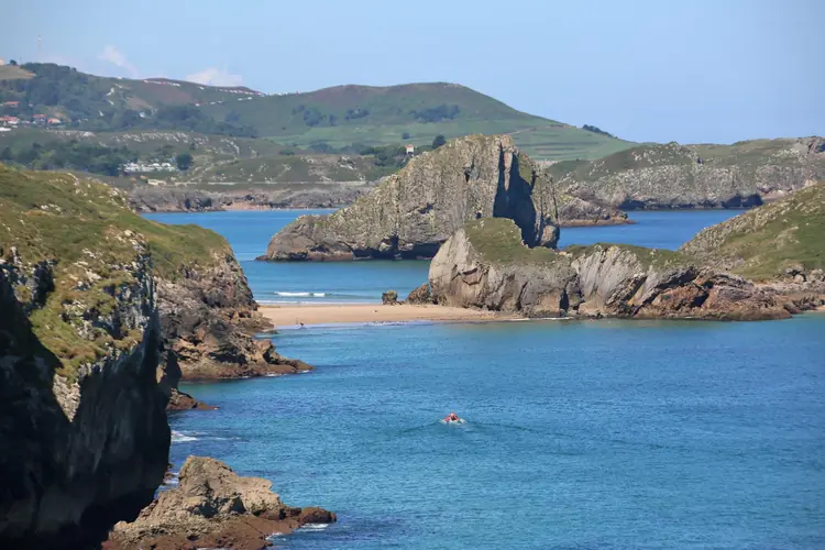 Playa de Andrín. La popular y apreciada playa de Andrín se reconoce desde el mirador de La Boriza, siguiendo el oriente, en el marco de un majestuoso panorama dominado por planas sierras como La Borbolla, la caliza de las playas y el contraste e ...